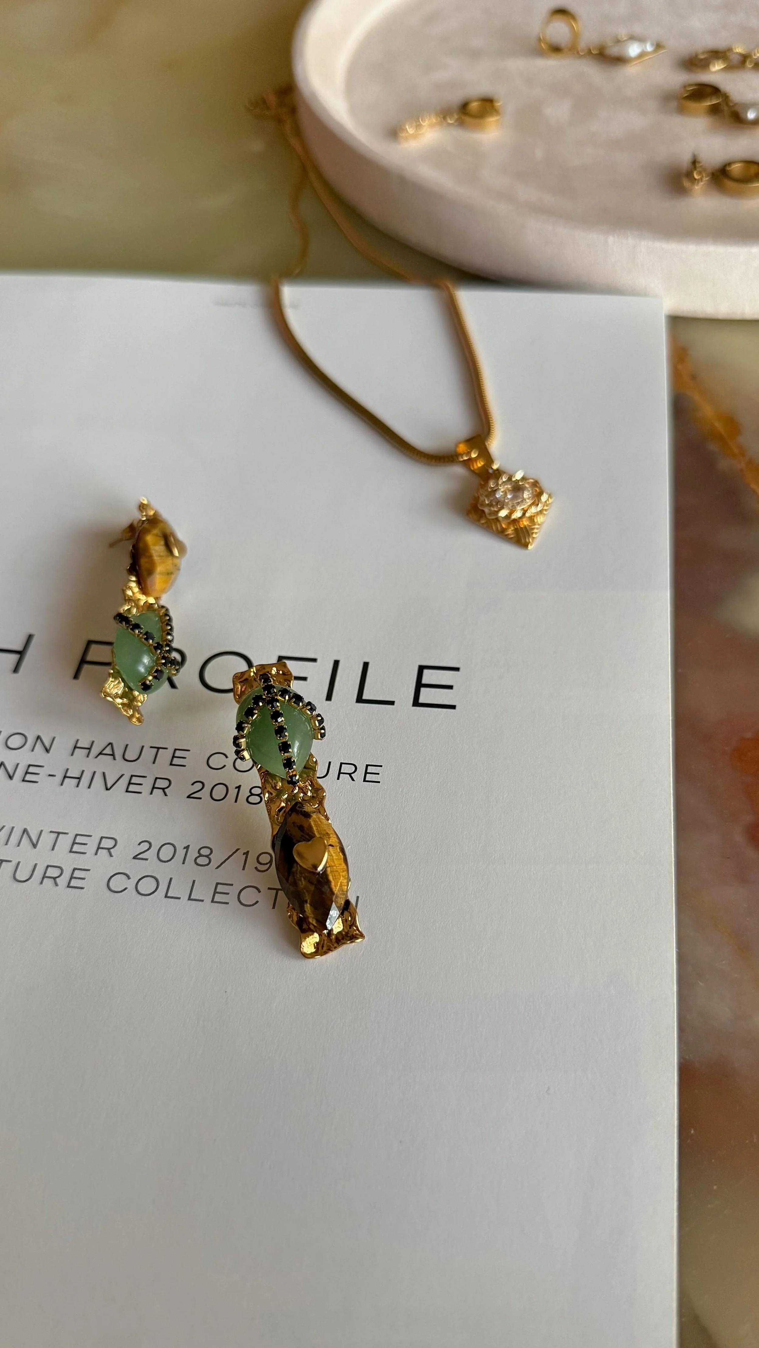 All hand assembled and designed by me with stunning cz crystals slightly differing in shape adorned with yellow jade cabochons.